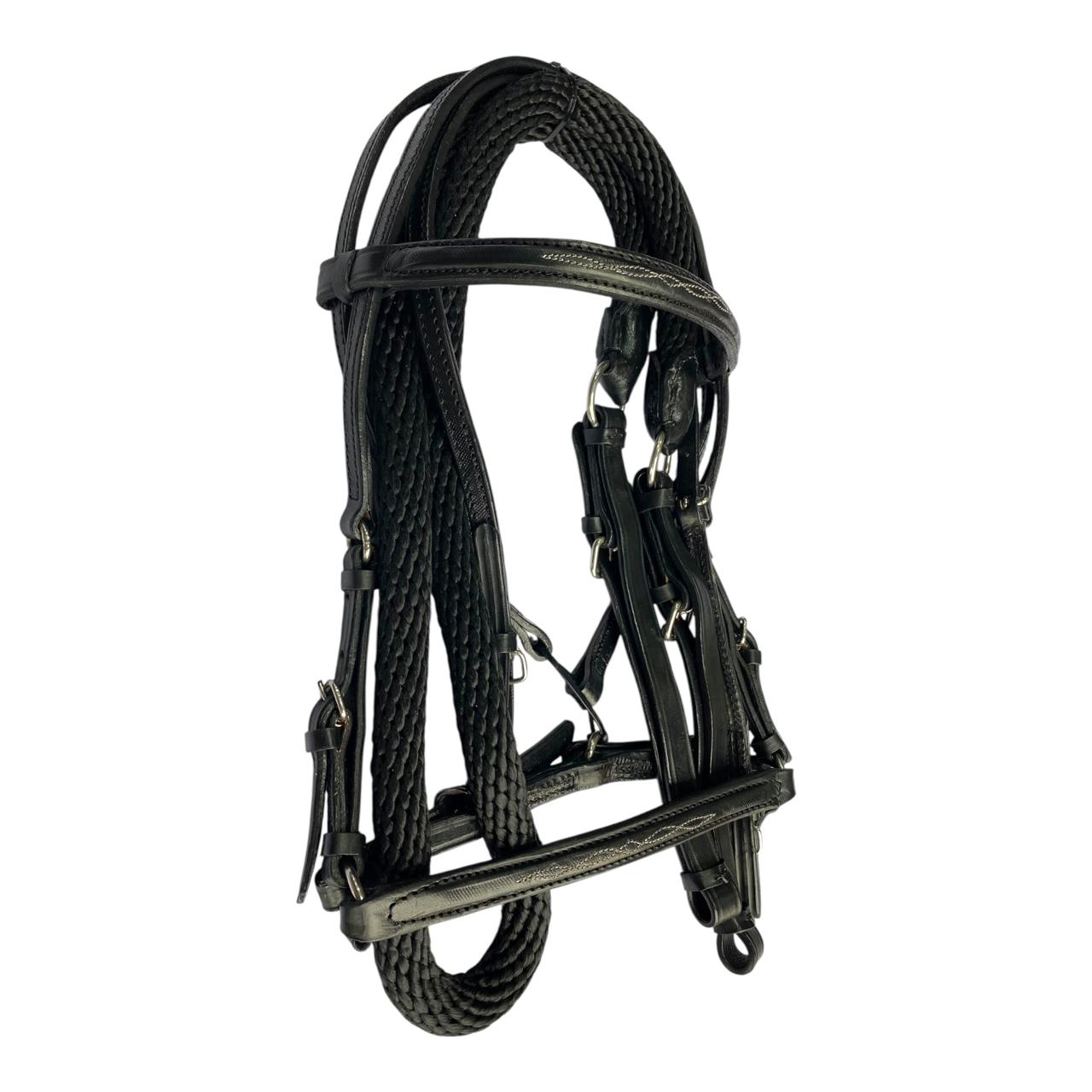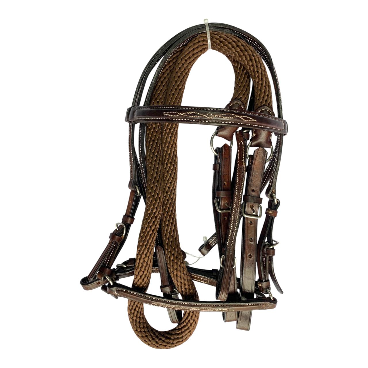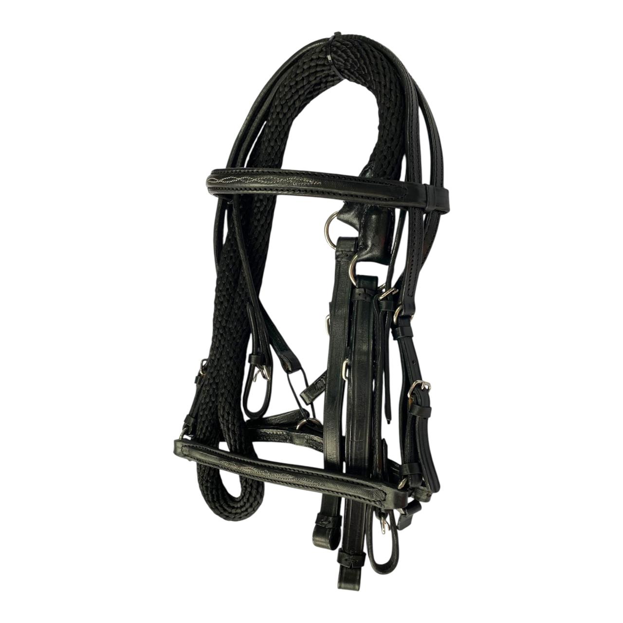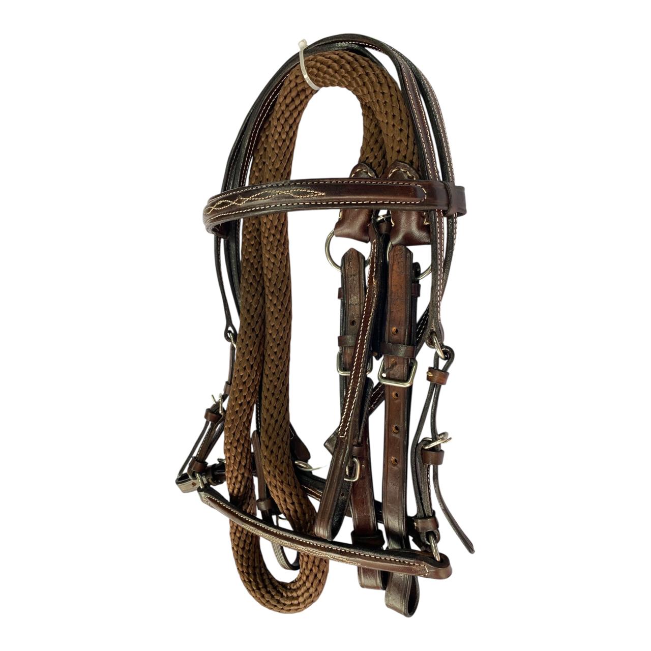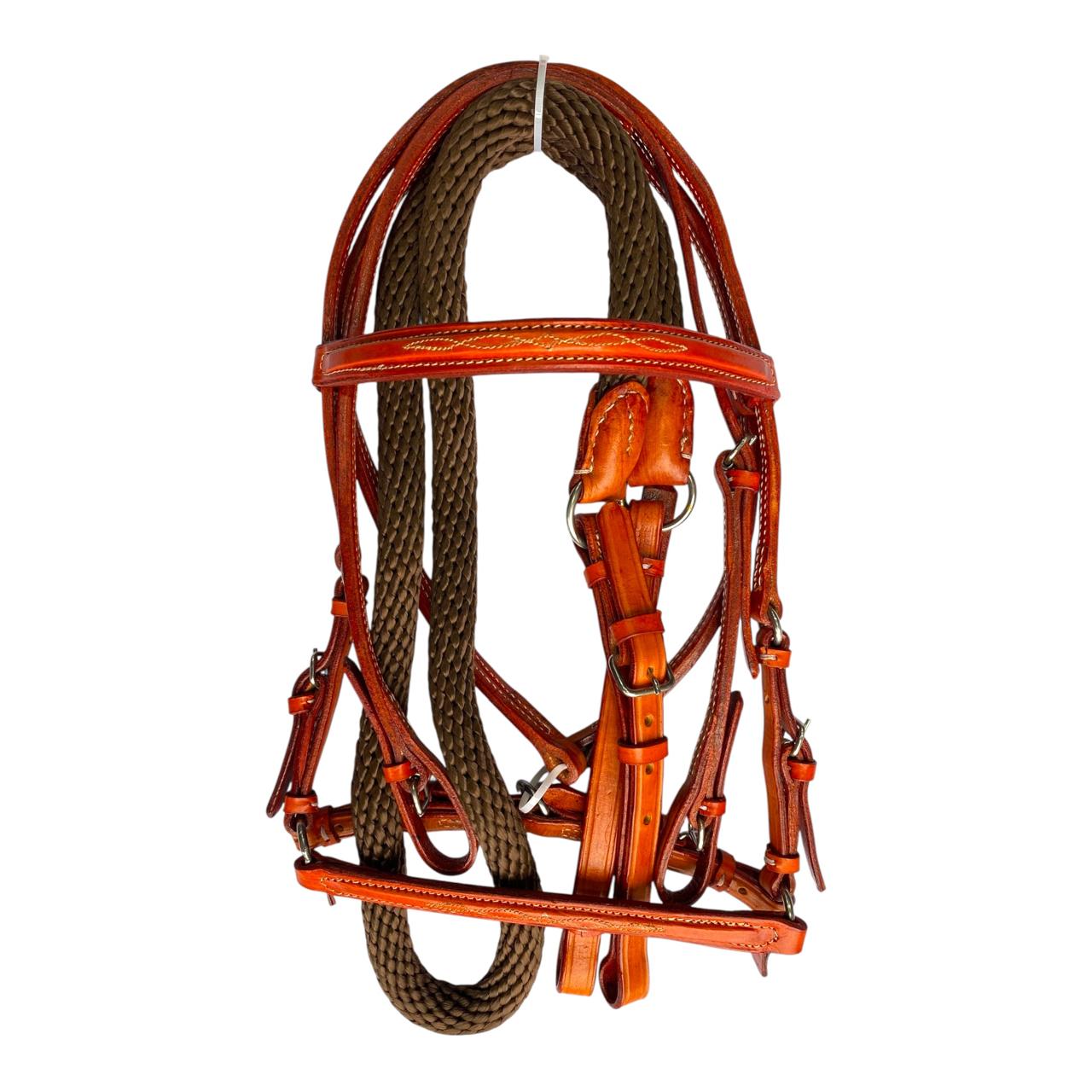 Nuestro Apero de cabeza fino en cuero tejido a mano, viene con jaquima, cabezada en cuero y rienda calibre 18, herraje es en acero inoxidable. Este apero de cabeza es perfecto para un día de paseo o cabalgata.