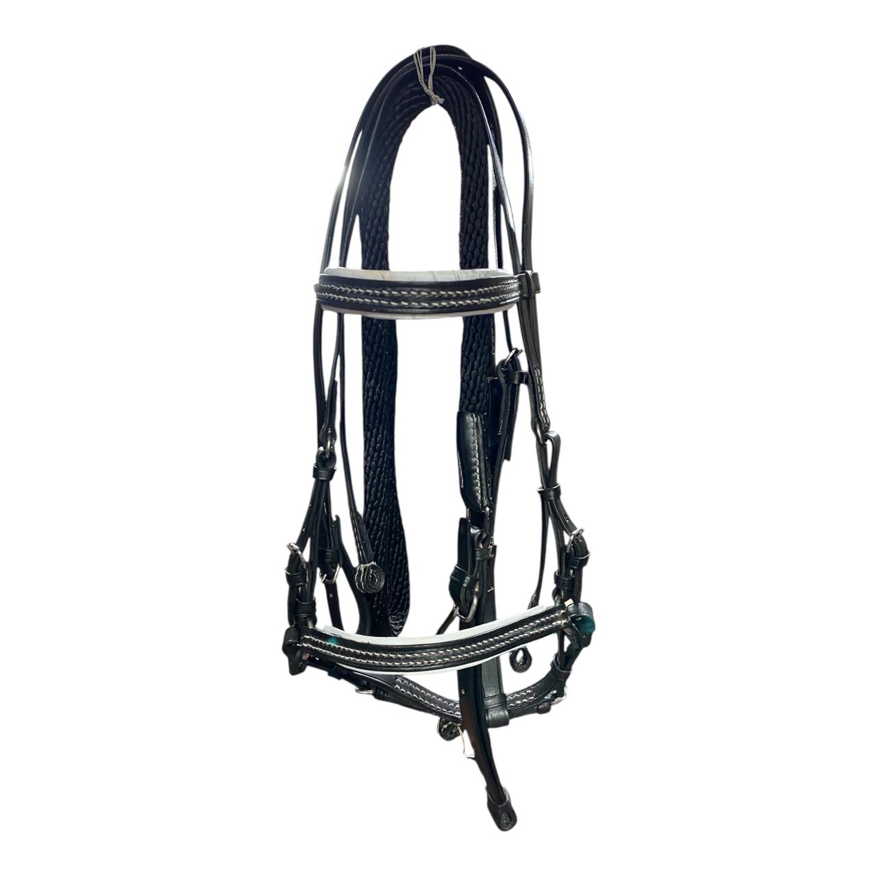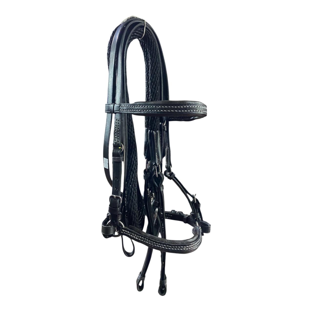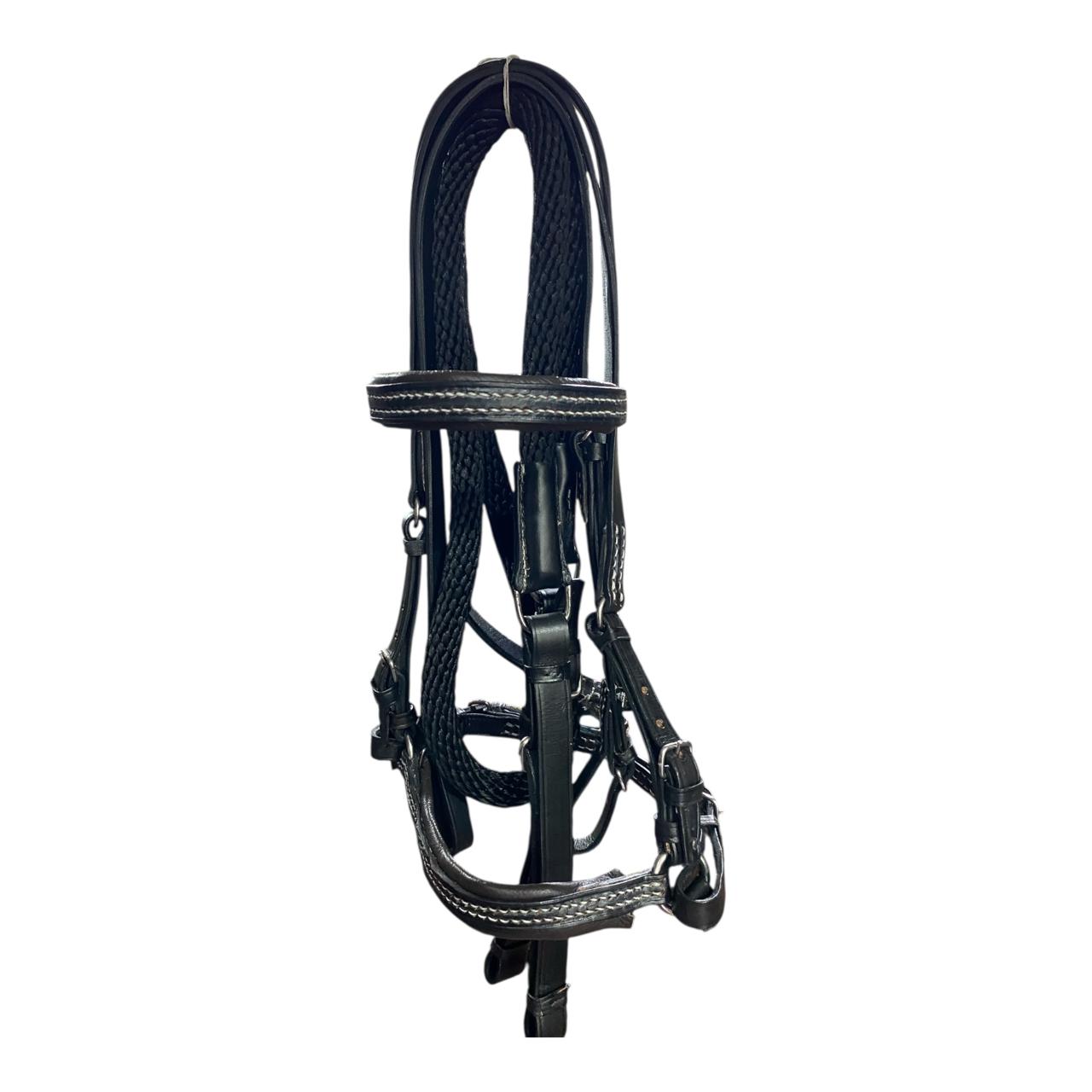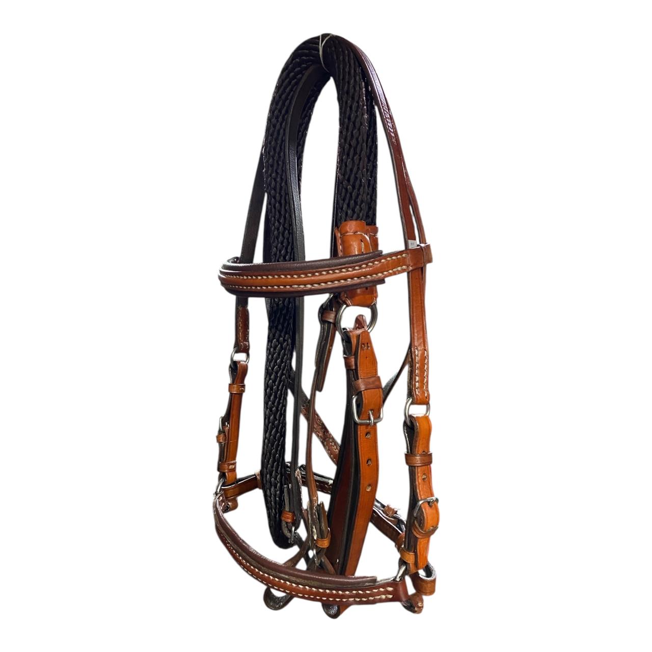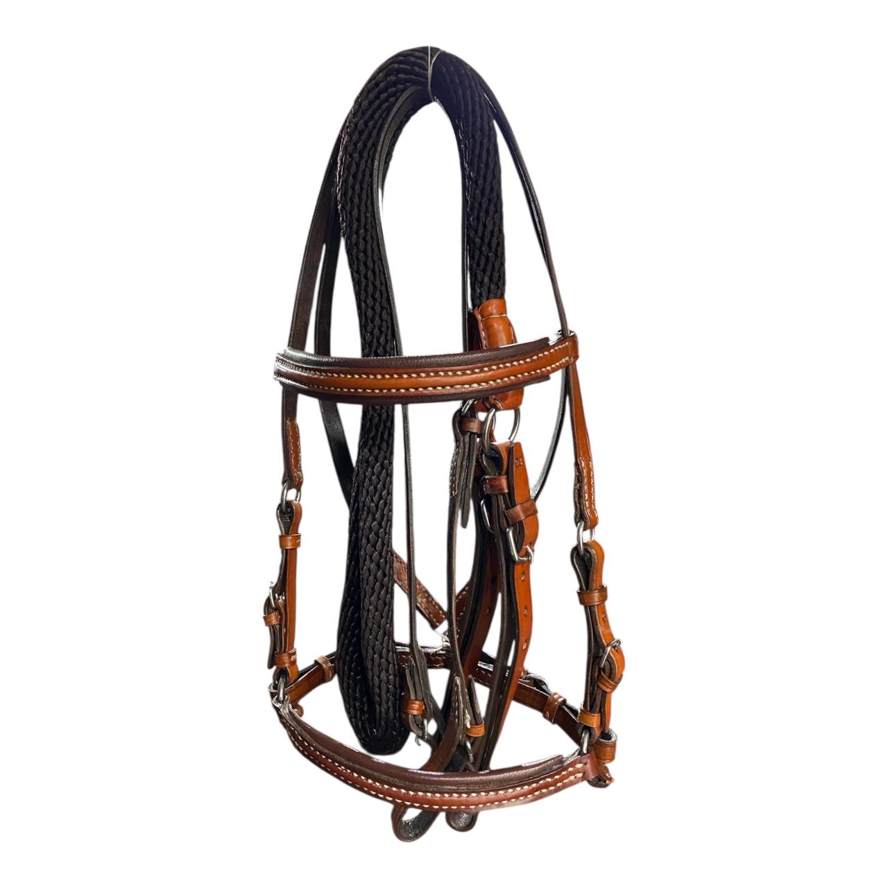 Hermoso apero de cabeza en cuero, Tejido a mano con lindos detalles, herraje en acero inoxidable. Incluye jáquima, cabezada, rienda en nylon tipo tubo o riendas en cuero.