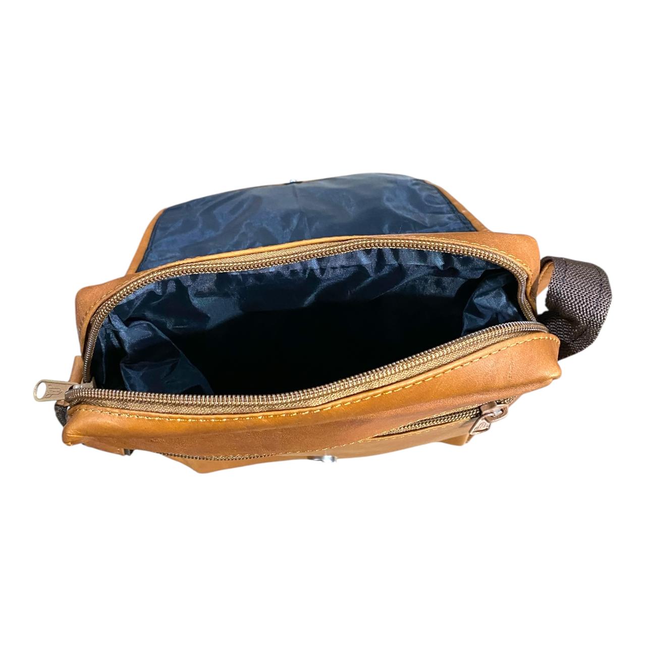 Descubre la comodidad de llevar lo esencial con nuestro Bolso confeccionado en cuero 100% . Su diseño compacto, pero con múltiples compartimentos, lo convierte en el accesorio ideal para tu día a día, viajes o cabalgatas.