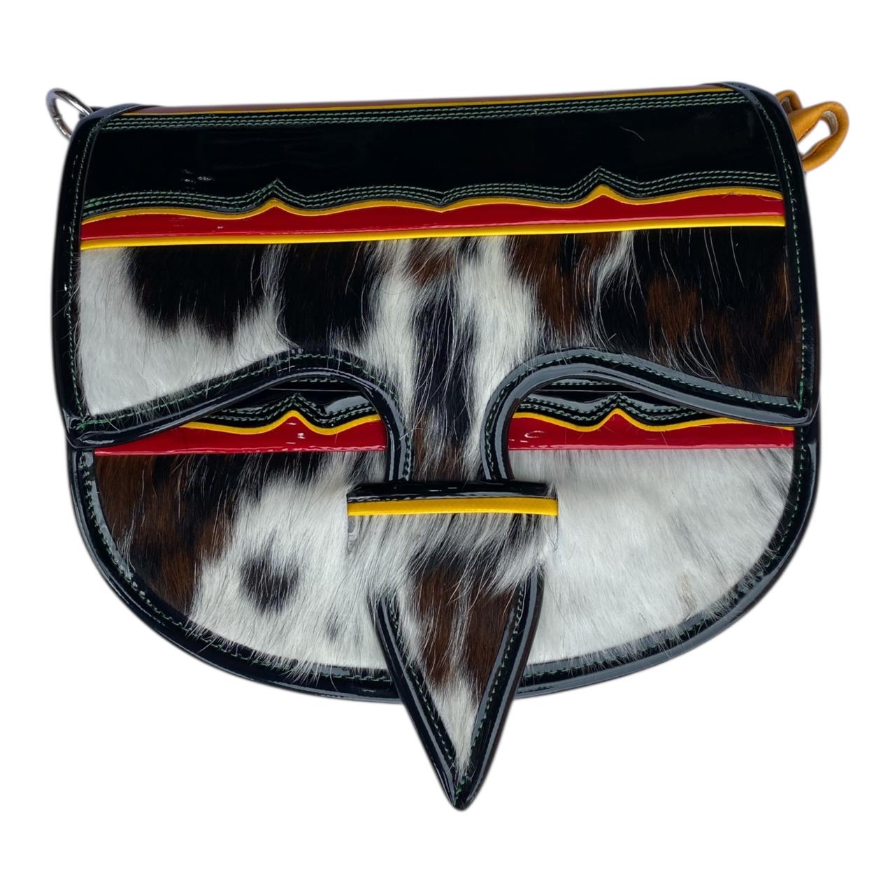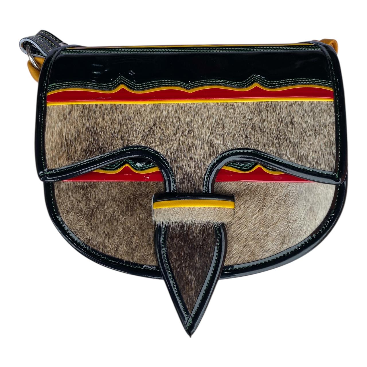 Confeccionado con la combinación perfecta de materiales de cuero de charol, cuero peludo y cuero liso, este carriel destaca por su exterior de cuero de vaca con pelo. Su interior está forrado en cuero de colores vivos, lo que le da un contraste audaz y llamativo.