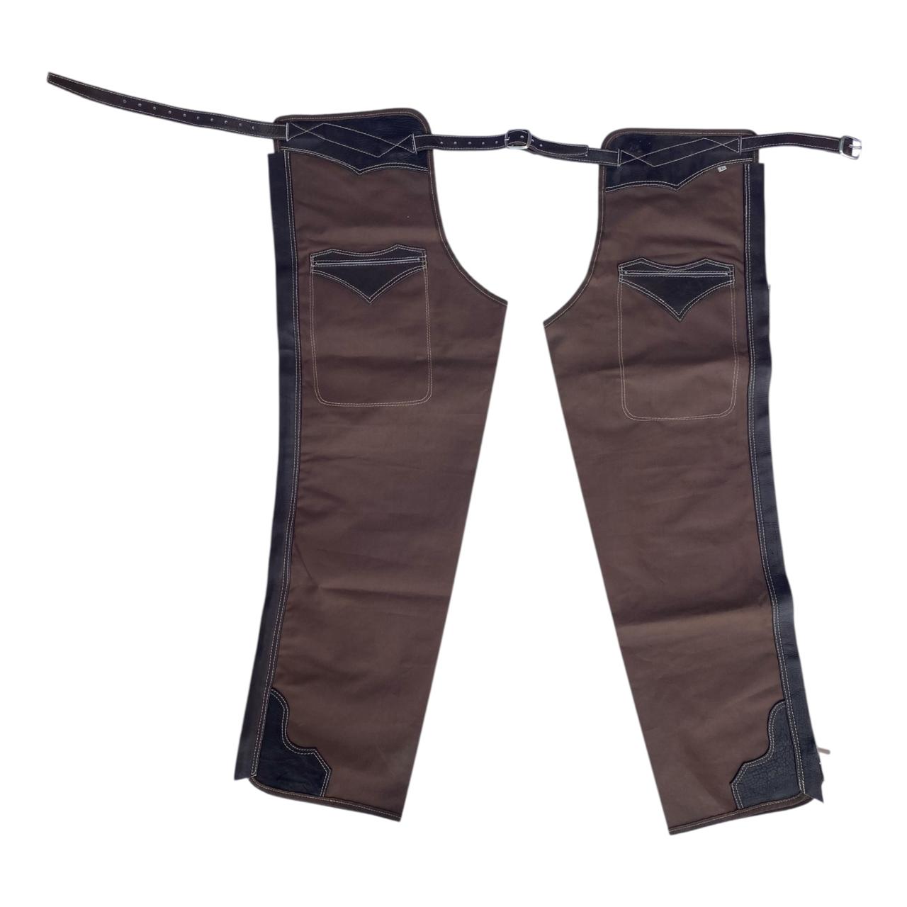 Protección y estilo se unen en nuestras chamarras de lona y correas de cuero. Son perfectas para tus actividades ecuestres o para darle un toque vaquero a tu atuendo. Su diseño, que incluye una cinturilla de cuero con hebilla ajustable y un cierre de cremallera en la pierna, asegura un ajuste cómodo y seguro.