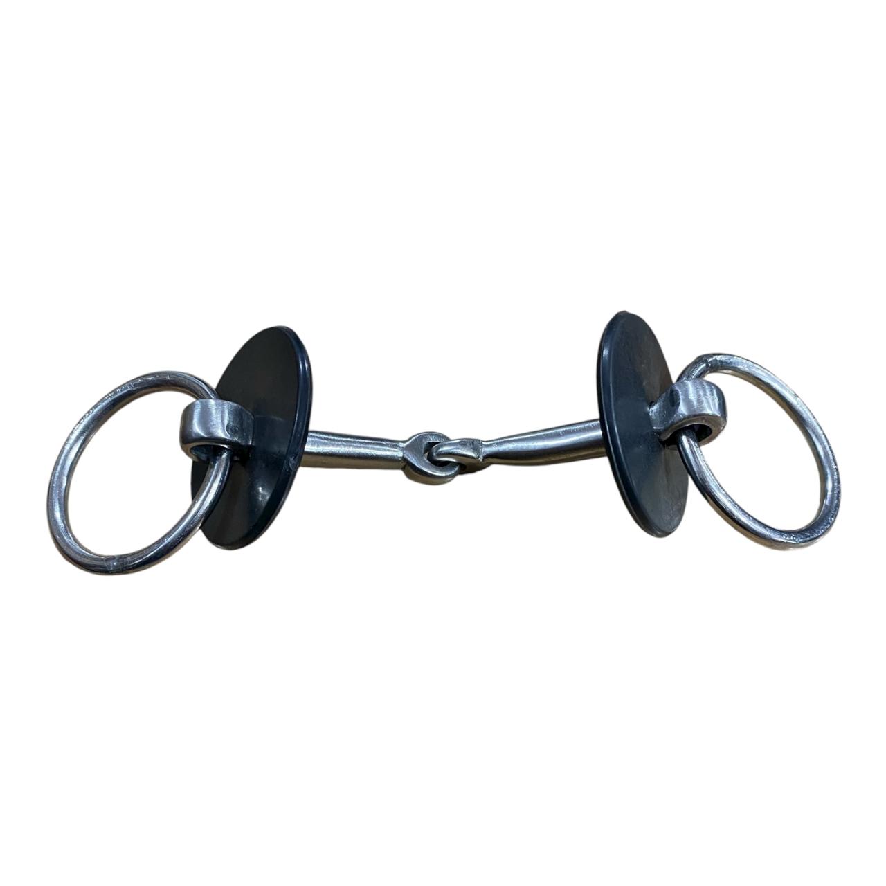 Asegura el máximo confort de tu caballo con nuestro Filete de Doble Articulación con Protectores de Bocado de caucho. Este diseño combina una embocadura suave con la protección esencial para las comisuras labiales, ideal para el trabajo diario y los caballos más sensibles.