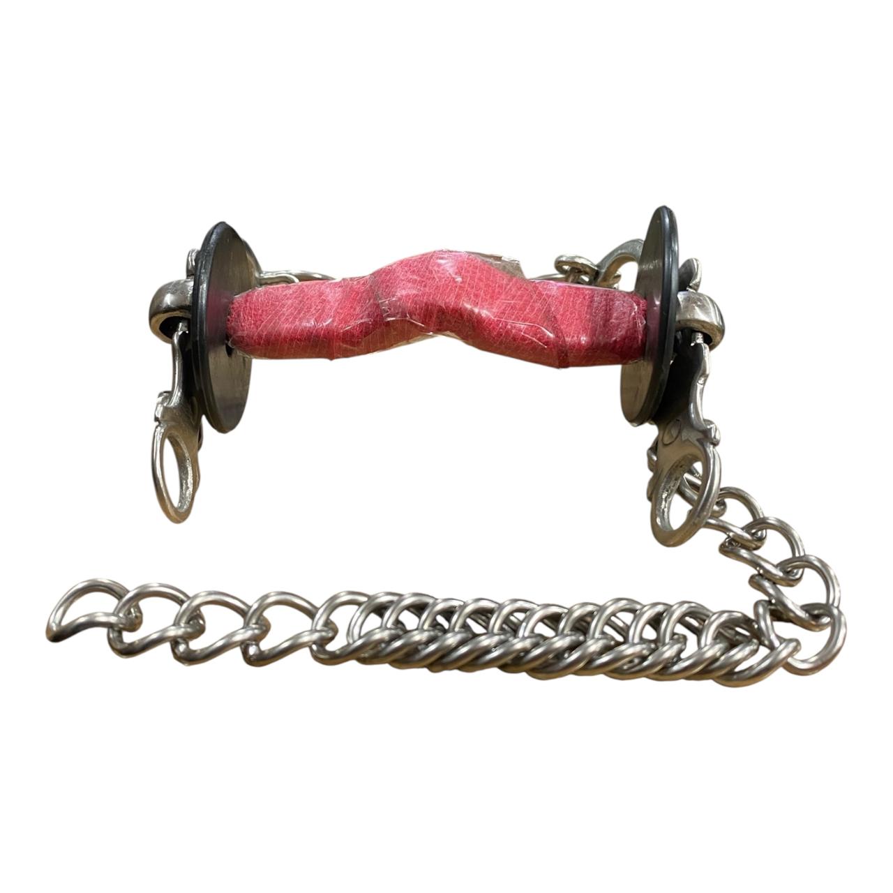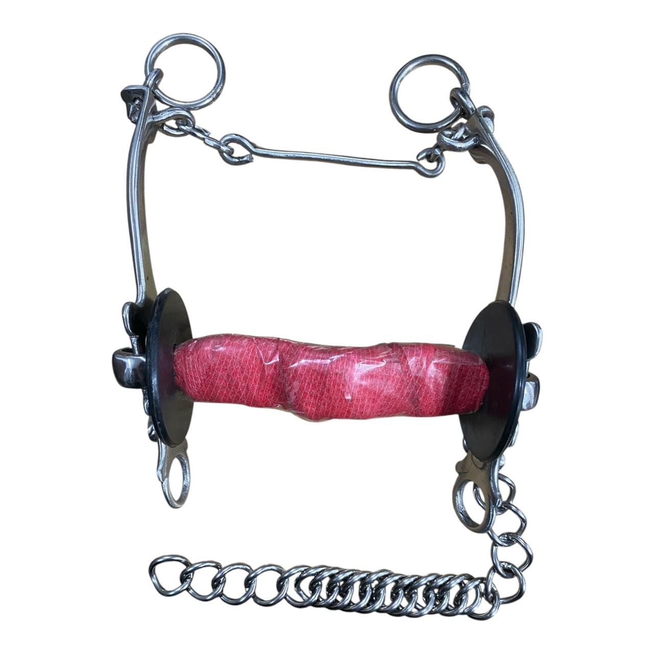 La barra central de metal está cubierta por venda Cobán, lo que proporciona una sensación más cálida y suave que el metal puro. Esto es excelente para caballos con bocas muy sensibles o para fomentar la masticación y la salivación.