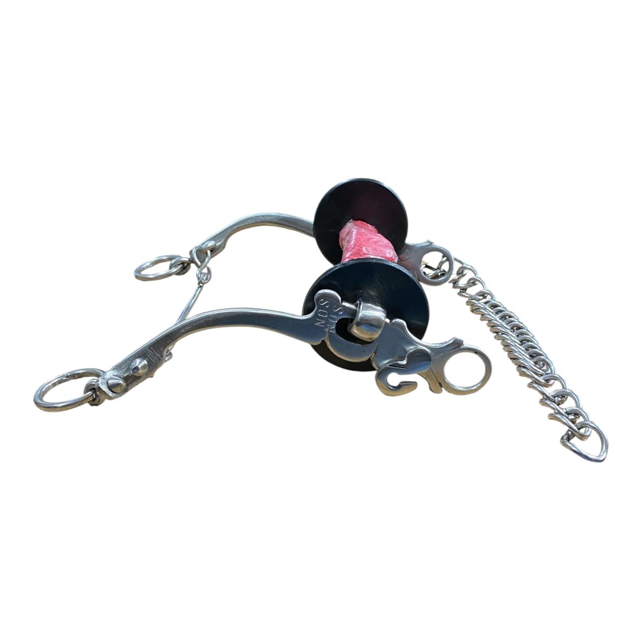 Los discos de caucho negros circulares en los laterales evitan que el bocado se deslice a través de la boca y añaden un ligero efecto lateral para ayudar en las ayudas de giro y dirección.