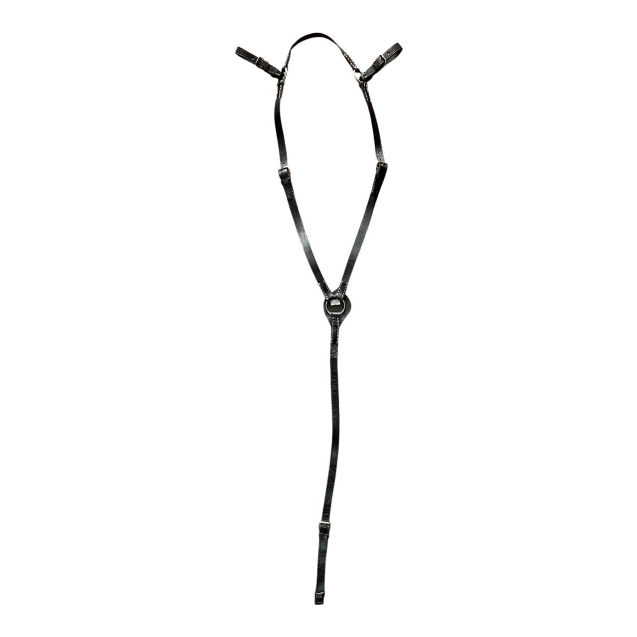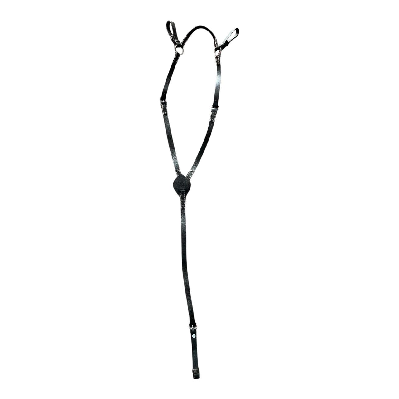 Fabricada con cuero 100% auténtico, la pechera se ajusta cómodamente al pecho del caballo, garantizando un soporte óptimo sin restringir su movimiento. Sus hebillas y herrajes metálicos de alta calidad aseguran una sujeción firme y duradera, perfectos para entrenamientos, competencias o simplemente para un paseo en el campo.