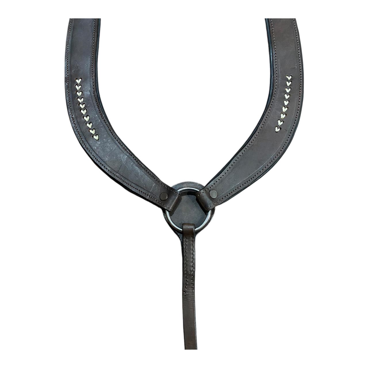 Nuestras pecheras en cuero de alta calidad, con un diseño ergonómico que brinda confort y seguridad durante el trabajo o la monta. Esta pieza destaca por su elegante color avellana y color negro su exclusivo detalle de cosido decorativo en la parte central de cada brazo, que resalta el acabado artesanal. Elaborada por manos expertas, su construcción robusta y sus costuras reforzadas garantizan durabilidad, resistencia y un ajuste firme al equipo de montar. Perfecta para quienes buscan combinar funcionalidad con un toque clásico y distinguido.