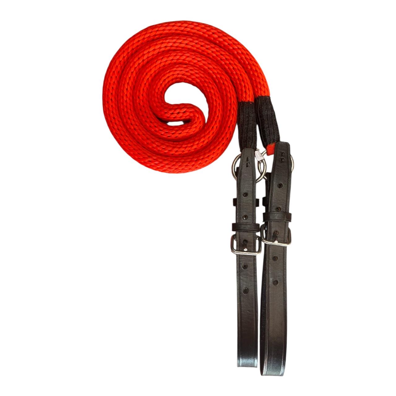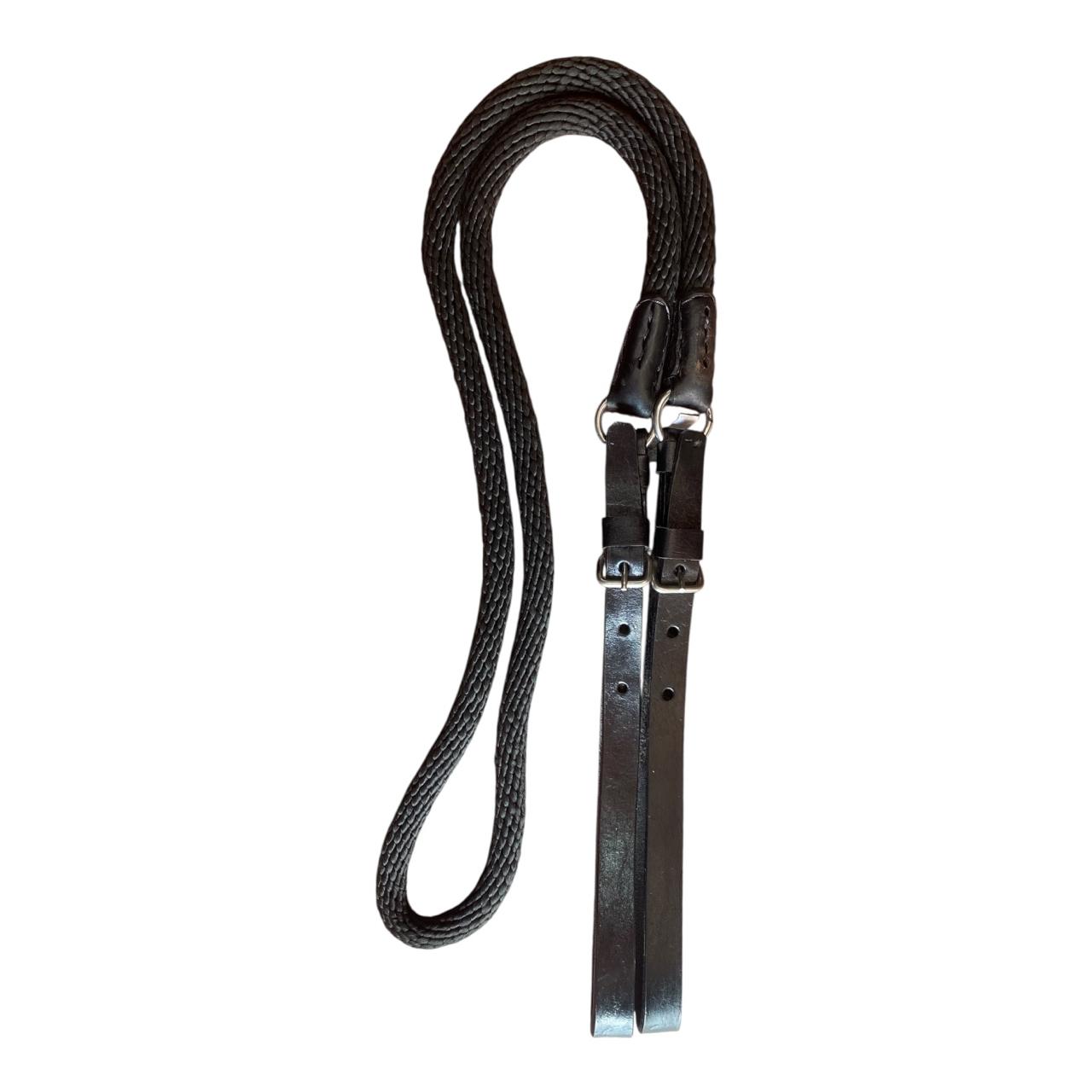 Lleva el control de tu caballo al siguiente nivel con nuestras riendas delgadas. Diseñadas para ofrecer un agarre cómodo y antideslizante, este modelo destaca por su ligereza y su sistema de ajuste mediante correas de cuero de primera calidad.