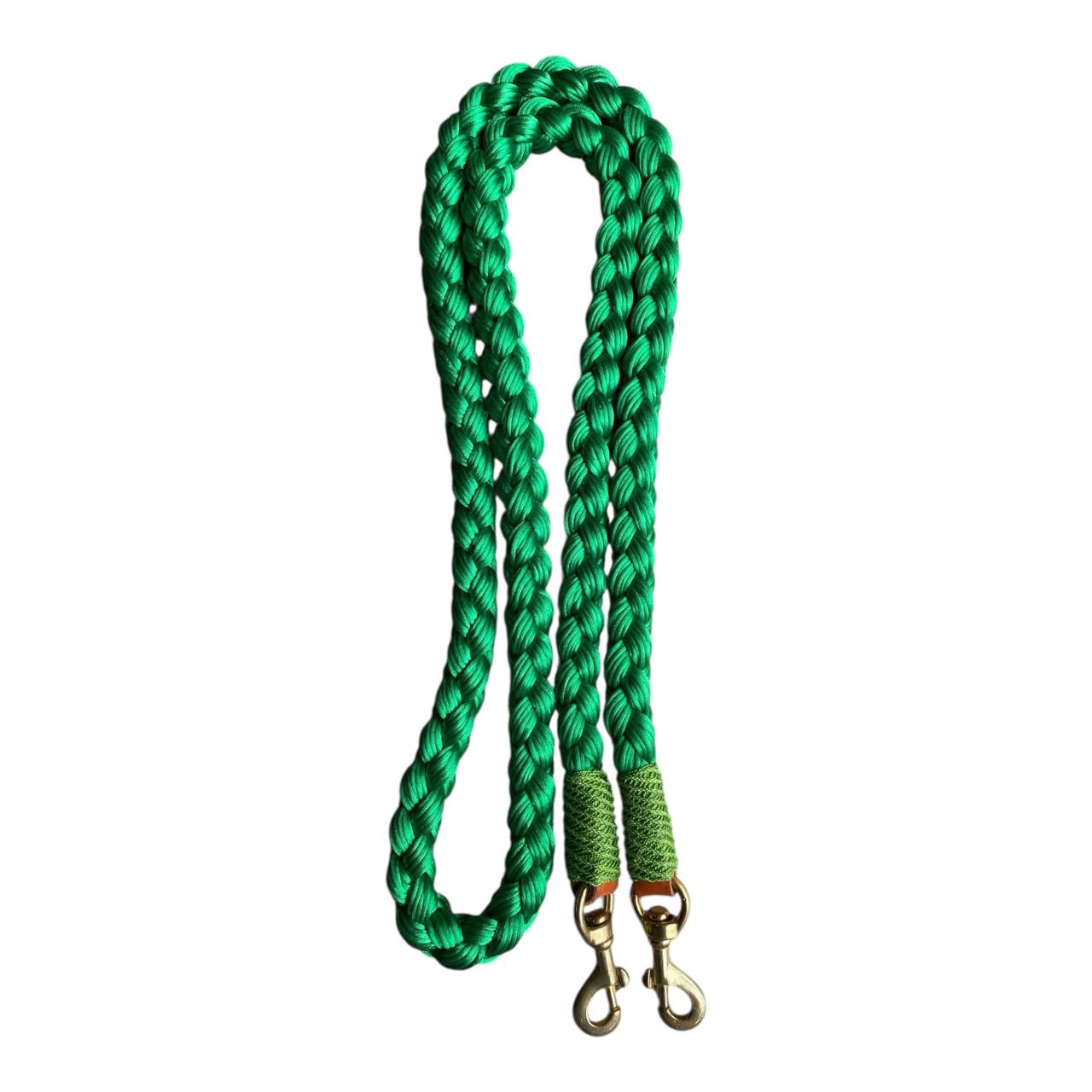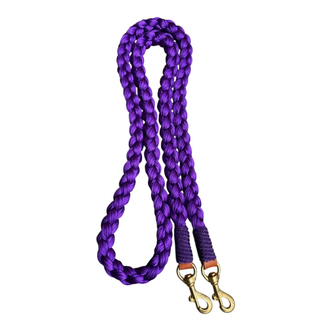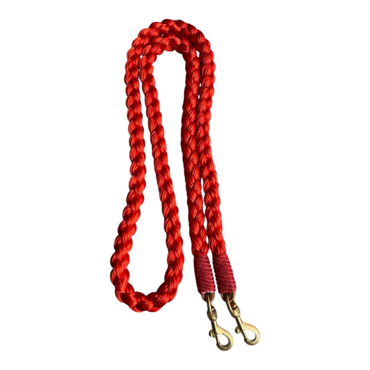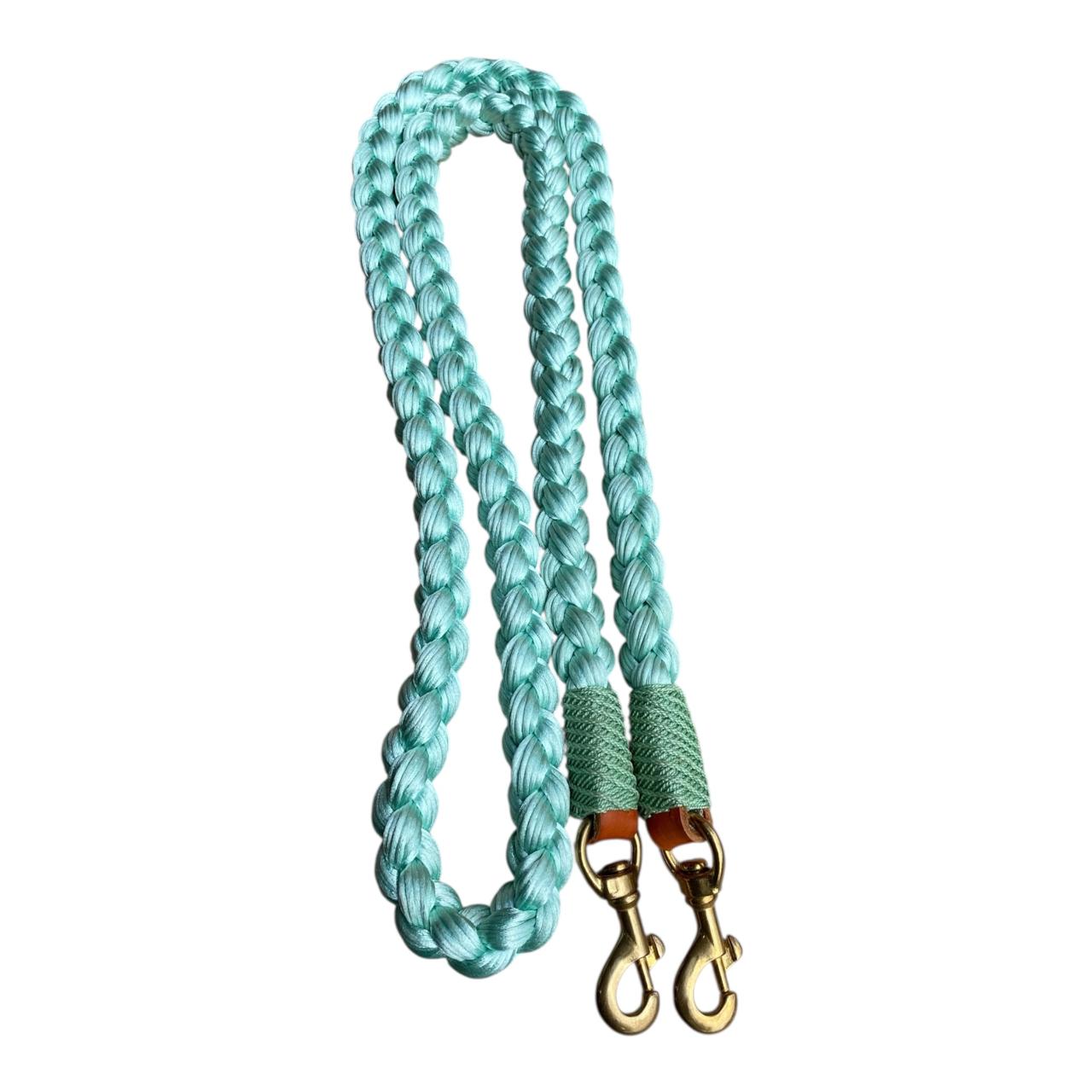 Riendas trenzadas en hilo tipo seda, la textura es muy agradable, con nudos tipo mazorca o nudo tipo tornillo. Todas las riendas vienen con mosquetón. Colores de colección combinados sujetos a disponibilidad.