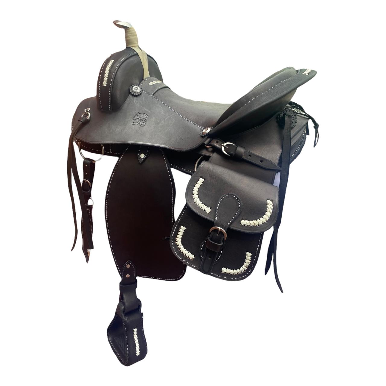 Nuestra silla Texana es una silla fina de lujo con detalles finos y muy lindos. El fuste de esta silla es en madera retobado en cuero crudo y es ideal para pasear o cabalgatear. Tiene detalles cocidos en cuero crudo y en hilo hechos a mano. Todos sus accesorios vienen hechos en cuero (Guardabarros, estribos, pechera y alforjas)