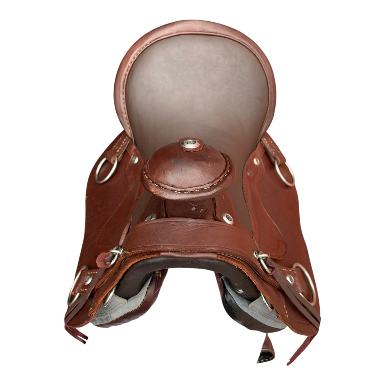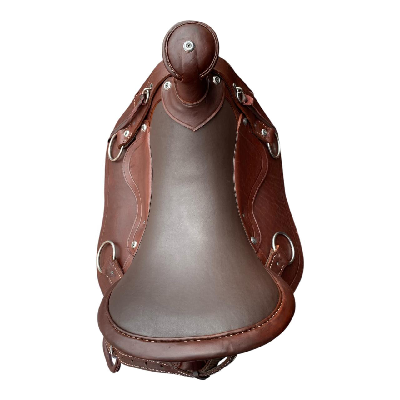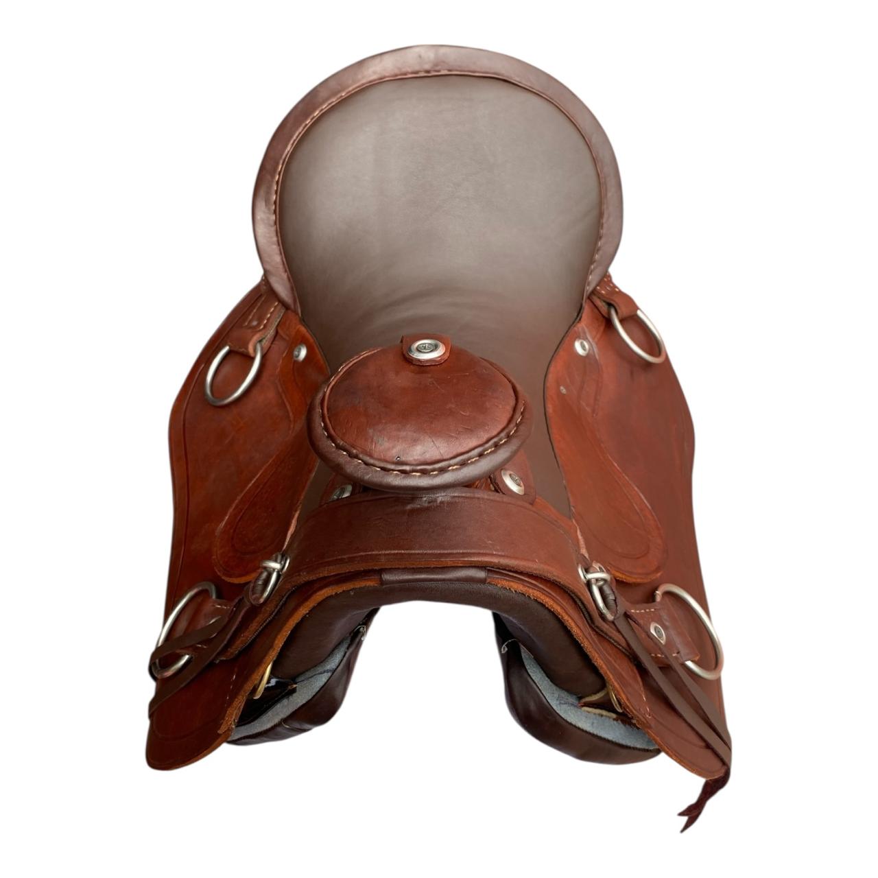 Esta hermosa silla es 100% en cuero, está diseñada para trabajo pesado o para pasear o cabalgatear, cuenta con herrajes en acero inoxidable y el asiento tiene un cómodo acolchado con espuma de alta densidad.
