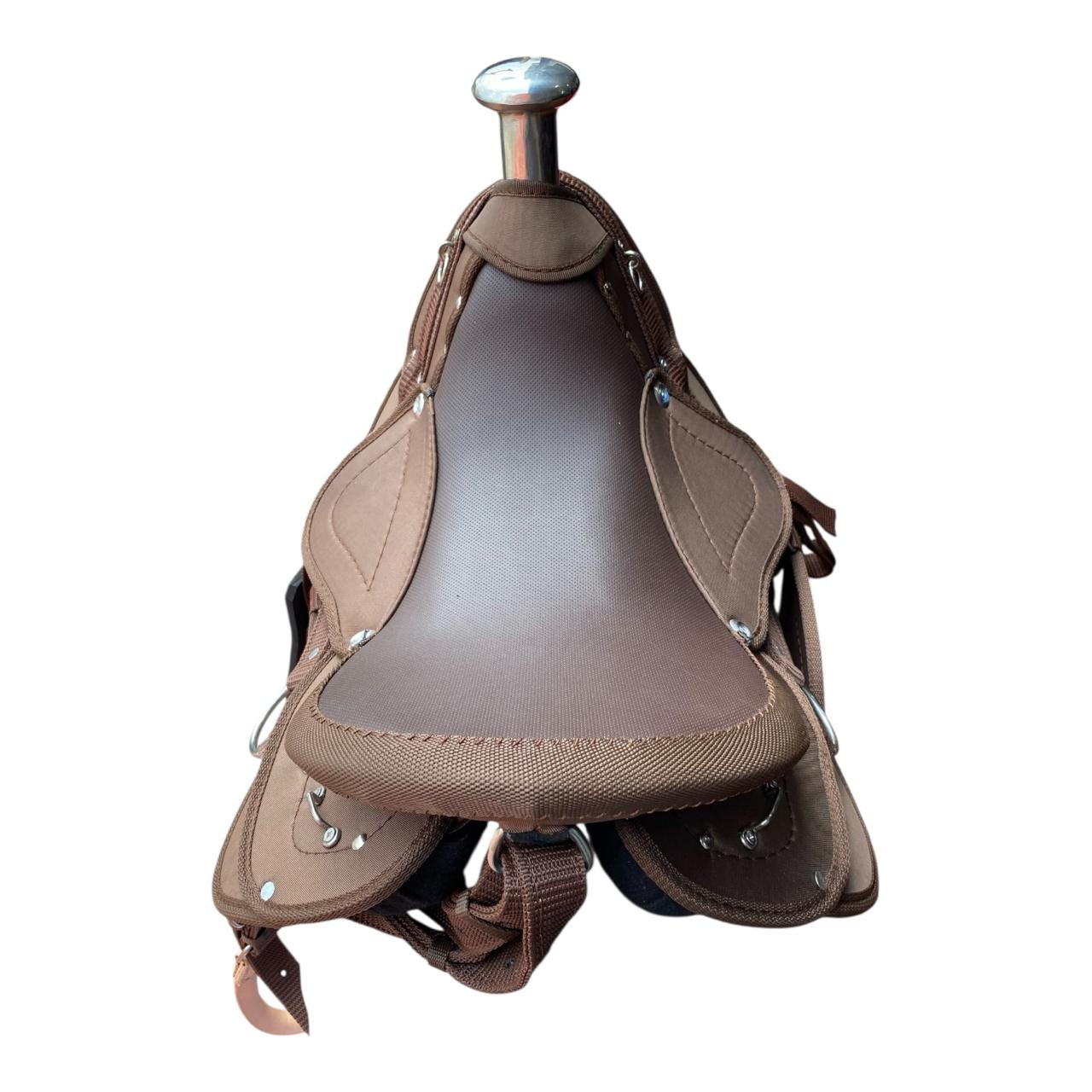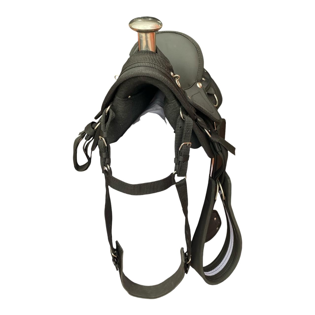 Esta silla está diseñada para trabajo pesado o para paseo, cuenta con herrajes en acero inoxidable, cabeza metálica, funciona para arcionar ganado. Silla 2 barras.