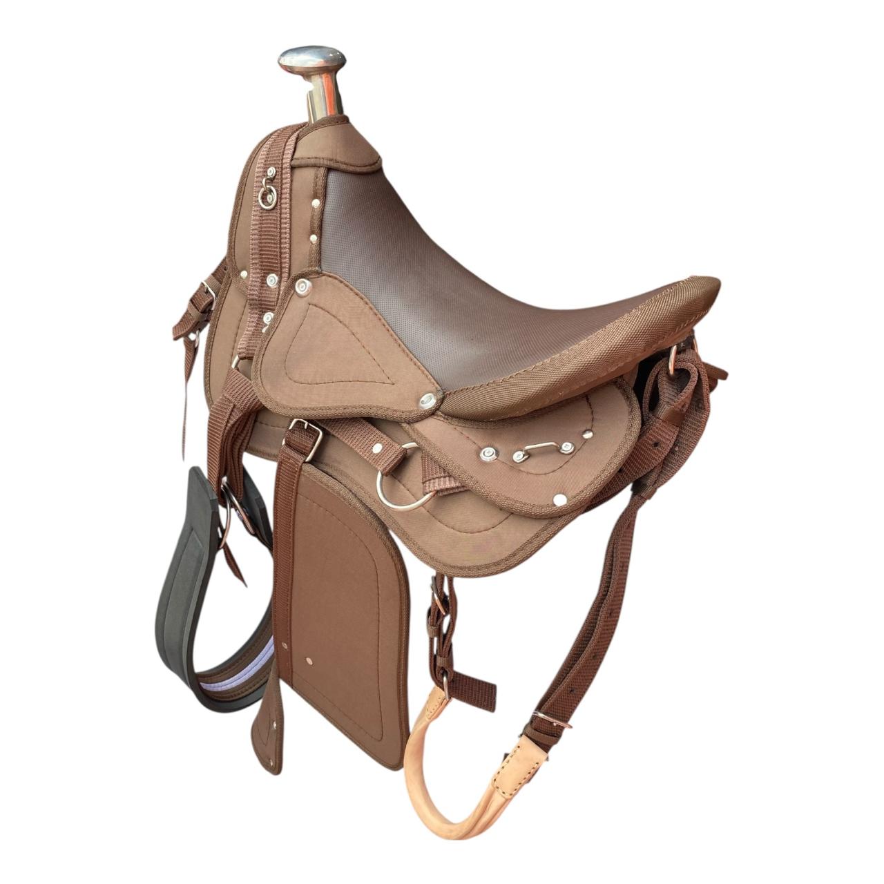 Descubre la comodidad y resistencia de nuestra Silla de Vaquería, el equipo ideal para largas jornadas de trabajo, cabalgatas o coleo. Esta silla combina la durabilidad de la lona con la calidad y por otro lado el toque clásico del cuero, ofreciendo un equilibrio perfecto entre peso ligero y robustez.