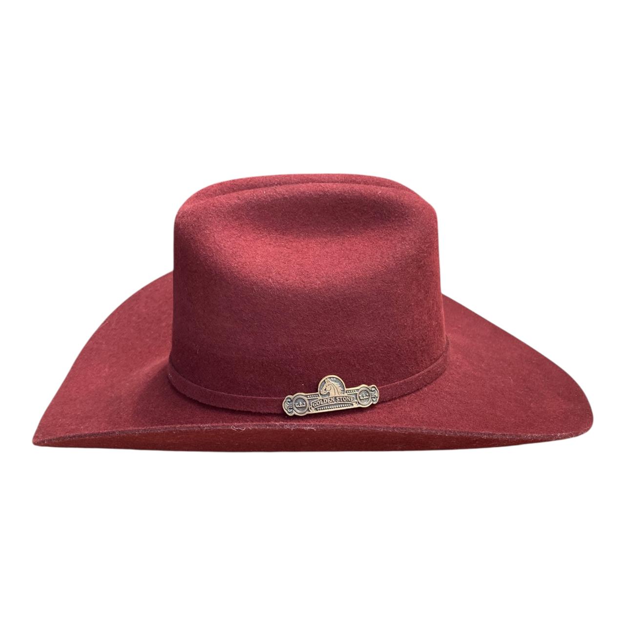 La copa es de altura media, con un diseño característico que suele incluir un aplastamiento frontal y un ligero hundimiento en la parte superior, creando esa silueta vaquera o ranchera tan reconocida.