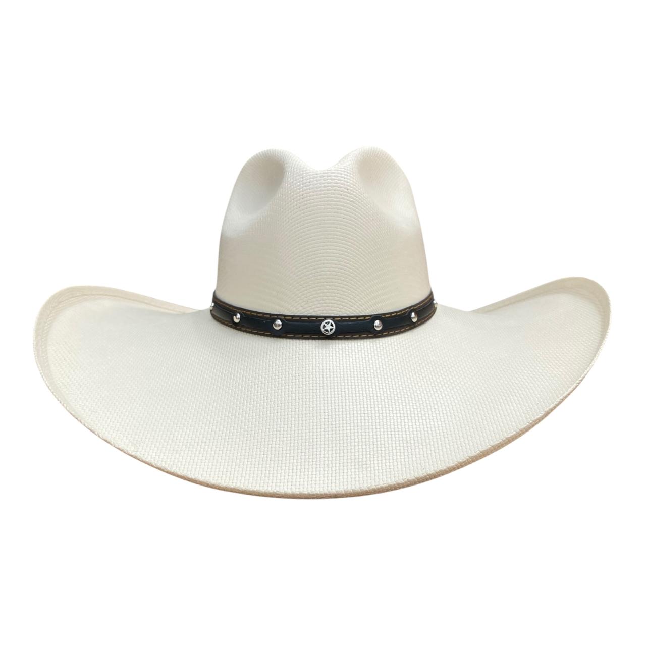 Nuestro sombrero vaquero de lona prensada blanca es la elección perfecta. Fabricado con lona de alta calidad, este sombrero es ligero, transpirable e ideal para mantenerte fresco bajo el sol. Su ala ancha te proporciona una excelente sombra, protegiéndote del sol mientras disfrutas de tus actividades al aire libre.
